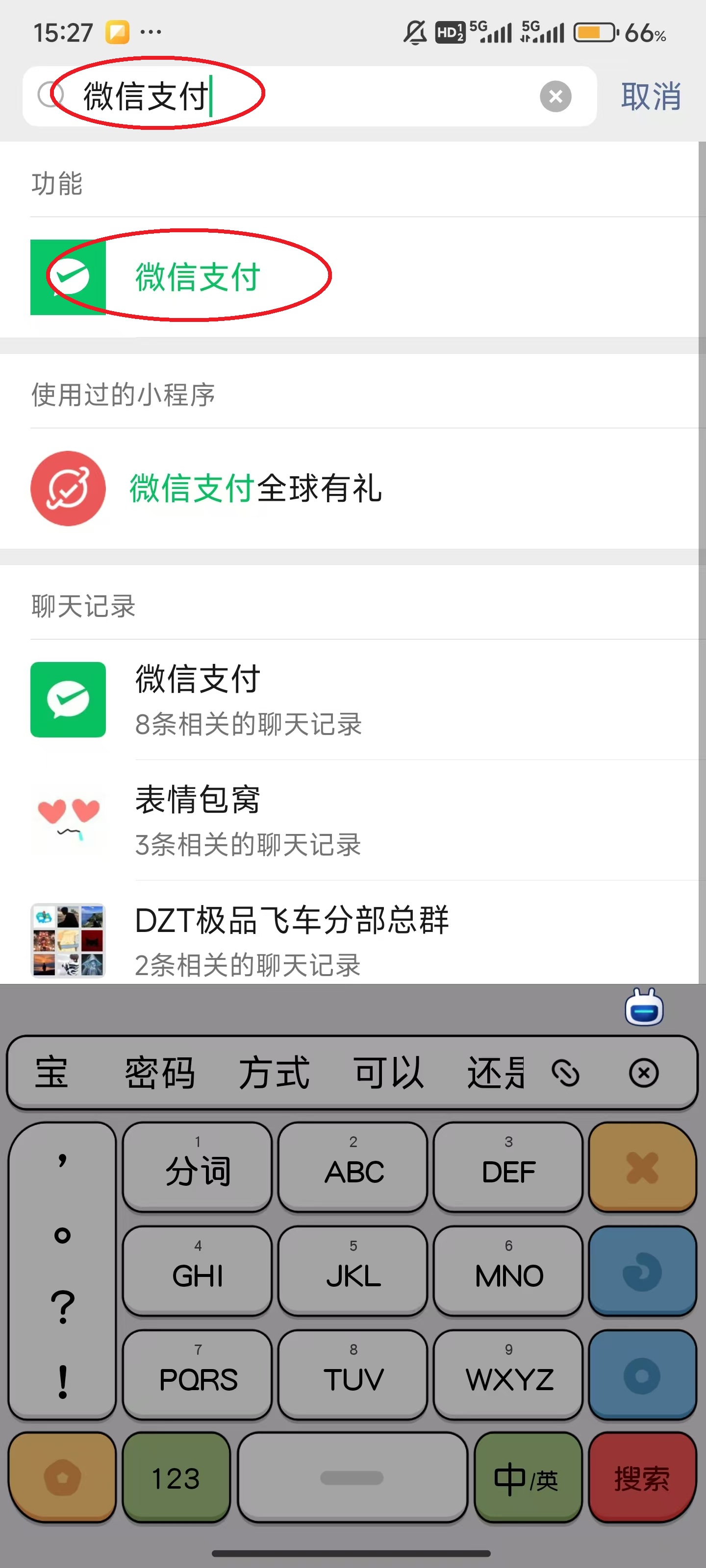 2、输入“微信支付”,随后点击显现出现的“微信支付”。